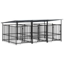 Fabriqué en acier galvanisé robuste, ce chenil est conçu pour résister à l’épreuve du temps. Le toit supérieur en polyéthylène résistant au feu et aux UV offre une protection maximale contre les intempéries.