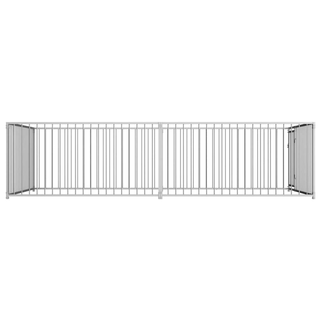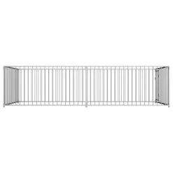 Ce chenil offre un vaste espace d’exercice, tandis que ses parois en barres d’acier assurent à la fois une bonne ventilation et une protection contre les dommages et les accidents imprévus. Sa construction solide en acier garantit une durabilité à long terme. De plus, la porte à charnière est équipée d’un système de verrouillage, assurant une sécurité supplémentaire pour vos chiens.