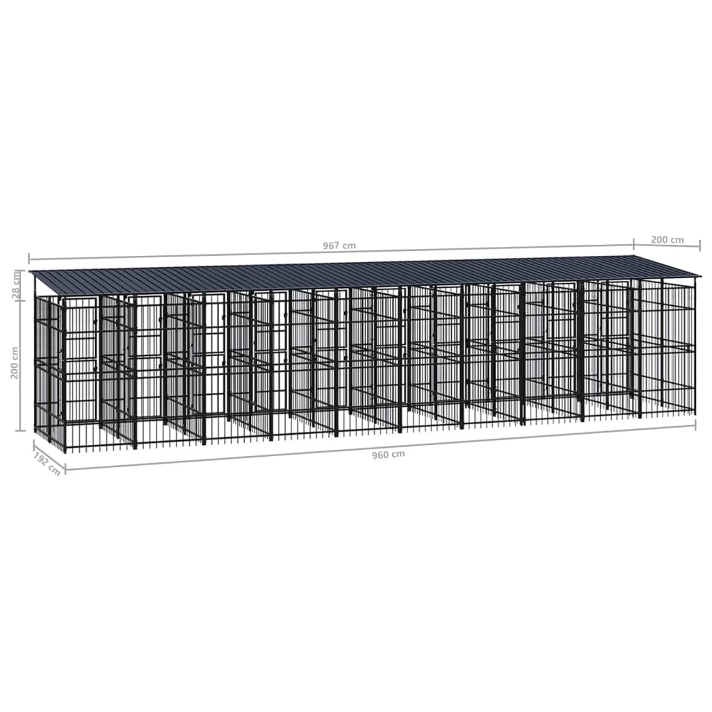 Ce modèle modulable comprend 10 chenils individuels, offrant un espace privé pour chaque chien. Sa construction robuste en acier enduit de poudre garantit une durabilité exceptionnelle, résistant ainsi à une utilisation intensive et offrant une solution fiable pour les professionnels du secteur.