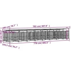 - Dimensions totale : 782 x 198 x 128 cm (L x l x H)
