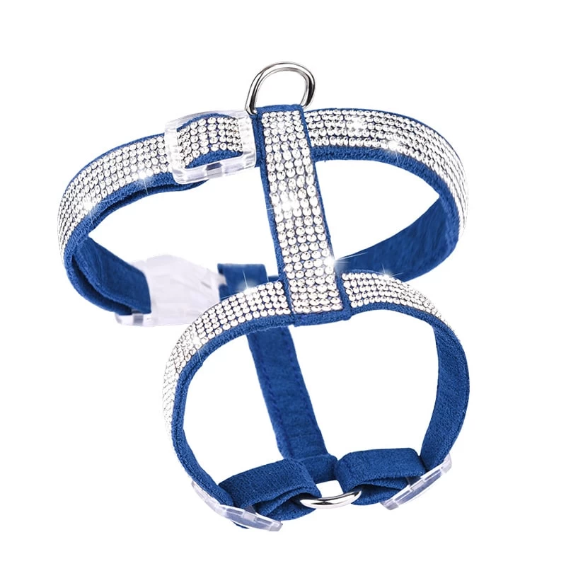 Le harnais à strass pour Chihuahua bleu est spécialement conçu pour mettre en valeur votre petit chien. Il donnera une touche de luxe à votre compagnon tout en restant d’un grand confort grâce à ses boucles ajustables et son cuir suédé de qualité.