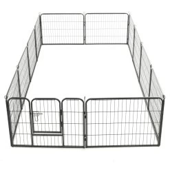 Notre parc modulable en acier noir pour chien, un équipement polyvalent idéal pour offrir à vos chiens un espace de jeu, d’entraînement et de protection. Ce sera le paradis de jeu parfait pour vos amis à fourrure ! Avec ses 12 panneaux robustes de dimensions 80×60 cm chacun, ce parc peut être facilement configuré selon vos besoins. Chaque panneau peut être attaché au suivant, vous permettant de créer différentes formes et tailles d’enclos pour vos chiens.