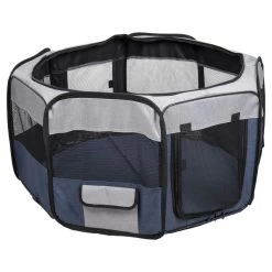 Découvrez notre parc pliable bleu et gris pour chien, un espace polyvalent idéal pour le dressage, le repos ou les jeux de votre compagnon à quatre pattes. Avec ses dimensions de 84x84x43 cm, ce parc offre une pièce spacieuse et convient parfaitement à une utilisation à la maison ou en voyage. Il est livré avec un sac de transport pour un rangement pratique. Le filet de sécurité avec fermeture éclair vous permet d’ouvrir ou de fermer rapidement le parc selon vos besoins. Les filets latéraux assurent une bonne circulation de l’air et offrent une excellente visibilité. De plus, les poches latérales sont idéales pour ranger de petits objets tels que des jouets. Ce parc est pliable pour un rangement facile et est doté d’un plancher amovible. Il convient à une utilisation en plein air et à l’intérieur, offrant ainsi une grande flexibilité.