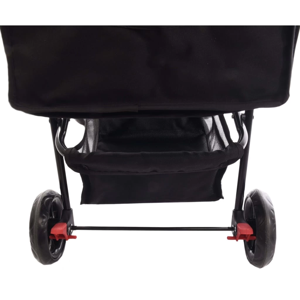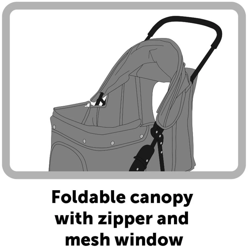 La poussette est équipée d’une laisse de sécurité pour empêcher votre animal de sauter. La couverture en maille offre à la fois une ventilation adéquate et une intimité pour votre chien. De plus, la poussette est dotée d’un panier de rangement pratique au fond, conçu pour contenir toutes les fournitures dont votre animal a besoin lors de vos sorties.